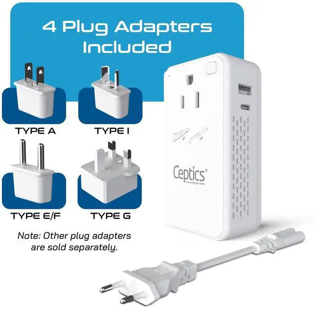[International Voltage Converter for Travel] Ceptics power converter 220v to 110v comes with a 4.92ft power cord with Type C plug and it also comes with other plug attachments such as Type A, G, I, E/F for worldwide travel. Use in countries like Europe, Germany, France, UK, Ireland, Switzerland, Italy, China, Australia, New Zealand, UAE, Qatar, Oman, Hong Kong, Bangladesh, Indonesia, South Korea, and more.