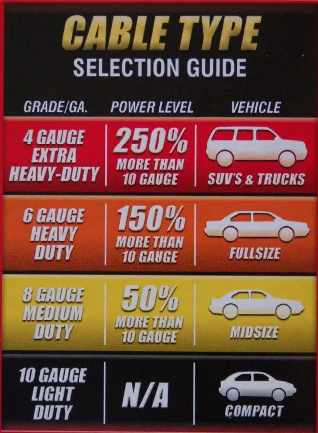 VERSATILE JUMPER CABLE: these heavy duty jumper cables is capable of quickly jumpstarting a truck, car, sedan or car batteries as their 2 gauge cable (the lower the gauge, the more power flows through) is able to charge up vehicles quicklyV
