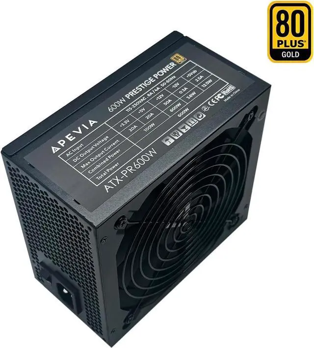 Apevia ATX-PR600W Prestige 600W 80 Plus Gold Certified & RoHS Compliance, Active PFC ATX Gaming Power Supply