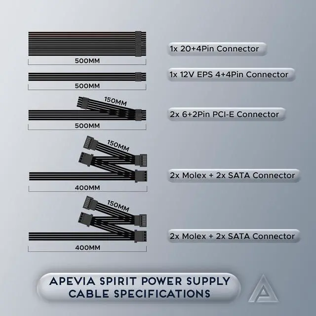 Apevia 700W Spirit ATX Gaming Power Supply with black sandblasted casing