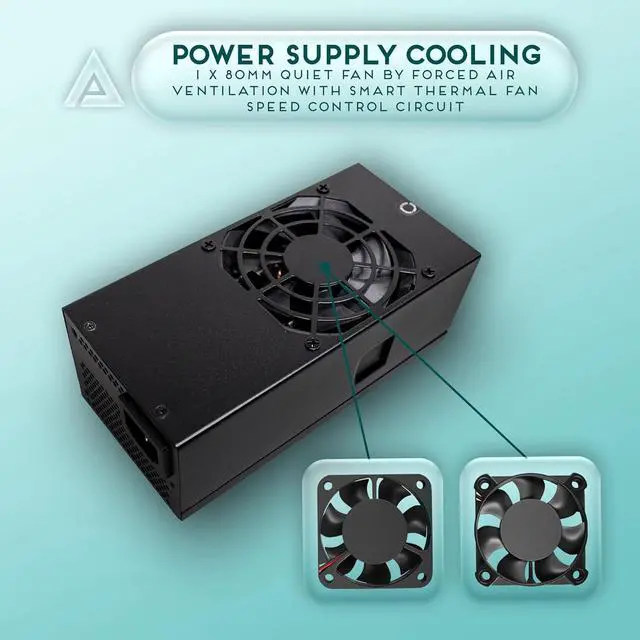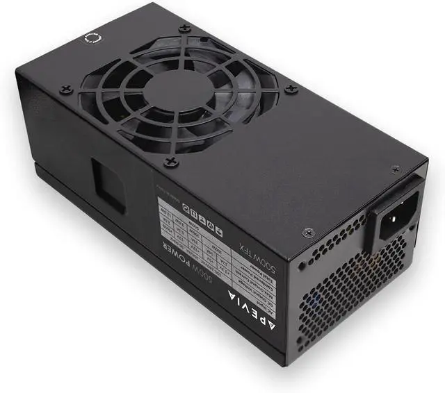 APEVIA TFX-PFC500W Standard 500W TFX Form Factor ATX Power Supply. Full Range Active PFC 90-264V. Maximum Power: 500W. Connectors: 1 x 20+4pin Main Power, 1 x 8pin 12V(P4+4), 2x 6+2 PCIE, 3 x SATA, 3 x 4pin Molex