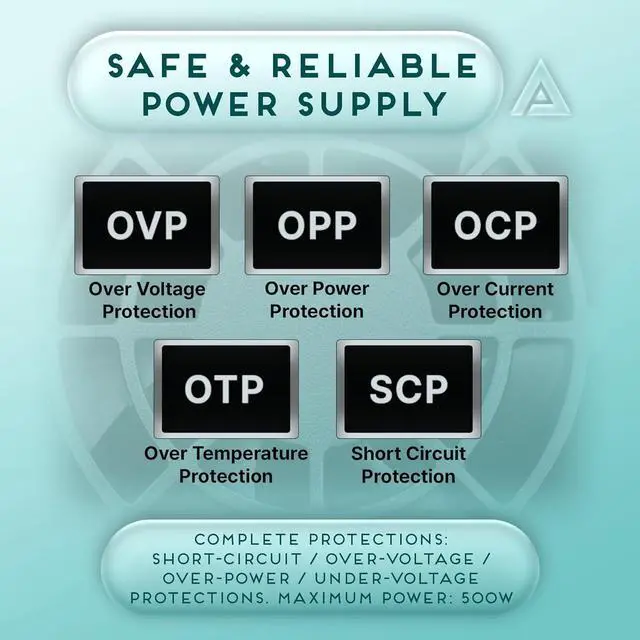Cooling: Forced Air Ventilation by 1 x 80mm Fan. Various protections including: Overvoltage Protection (OVP), Overload Protection (OLP), Overcurrent Protection (OCP), Heating Protection (OTP), and Short Circuit Protection (SCP). Dimension: 175.26mm x 83.82mm x 63.5mm (6.9" x 3.3" x 2.5") - L x W x H