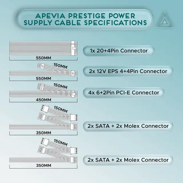 Apevia ATX-PR600W-WH Prestige 600W 80 Plus Gold Certified & RoHS Compliance, Active PFC ATX Gaming Power Supply White Casing. Supports Dual /Quad/Multi-Core CPUs. Supports Single 12V Output for Higher Power Usage