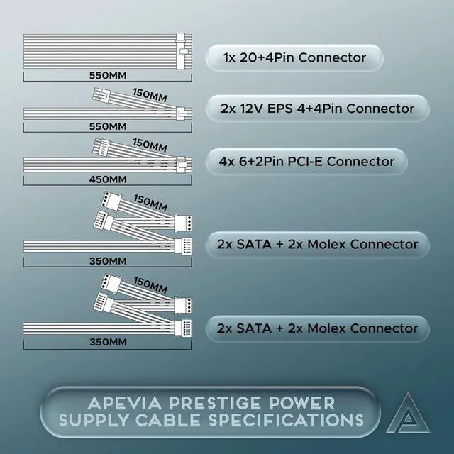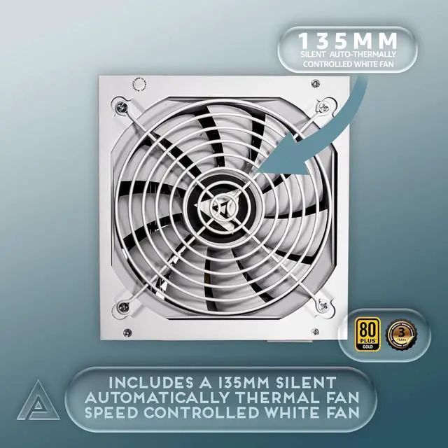 Apevia ATX-PR850W-WH Prestige 850W 80 Plus Gold Certified & RoHS Compliance, Active PFC ATX Gaming Power Supply White Casing. Supports Dual /Quad/Multi-Core CPUs. Supports Single 12V Output for Higher Power Usage