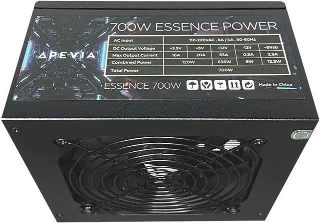 Apevia 700W Essence ATX Semi-Modular Gaming Power Supply with black sandblasted casing