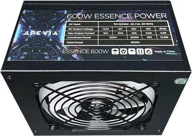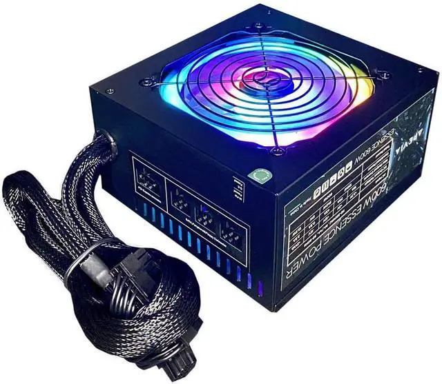 Apevia 600W Essence ATX Semi-Modular Gaming Power Supply with black sandblasted casing