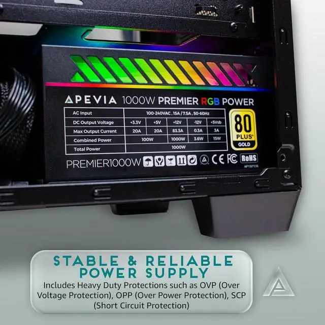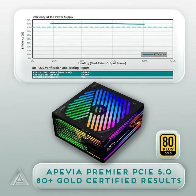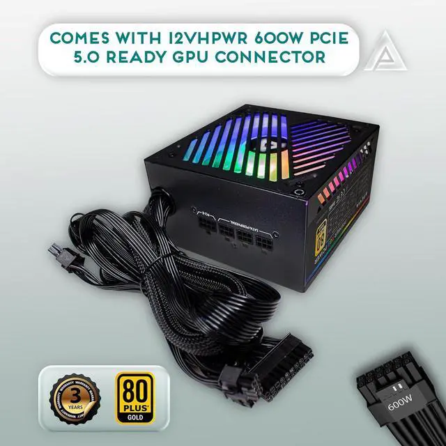 1000W 80+ Gold With PCIE 5.0 / Gen 5 12VHPWR 12+4 (12pin/16pin) GPU Connector, Certified Active PFC ATX Gaming Semi-Modular Power Supply.