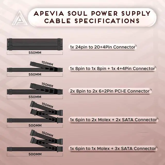 Apevia 650W Soul ATX Fully Modular Active PFC Gaming Power Supply With Flat Black Modular Cable Connectors