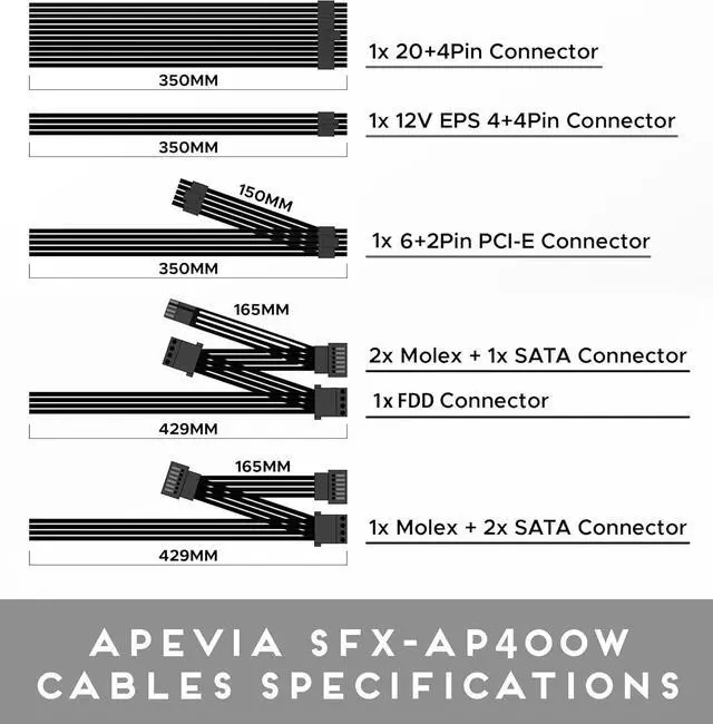 APEVIA SFX-AP400W Mini ITX Solution / Micro ATX / SFX 400W Power Supply