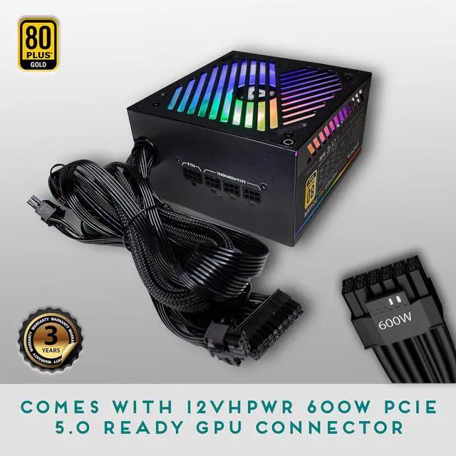 850W 80+ Gold With PCIE 5.0 / Gen 5 12VHPWR 12+4 (12pin/16pin) GPU Connector, Certified Active PFC ATX Gaming Semi-Modular Power Supply.