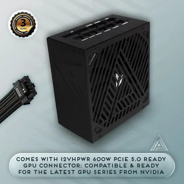 Complete Heavy Duty Protections: Short-Circuit/ Over-Voltage/ Over-Power/ Under-Voltage Protections. Safe, Stable & Reliable Gaming Power Supply. Supports ATX 3.1 and PCIe 5.1, with a 16-pin 12VHPWR PCIe cable that delivers up to 600W for the latest NVIDIA GeForce RTX Series graphics cards