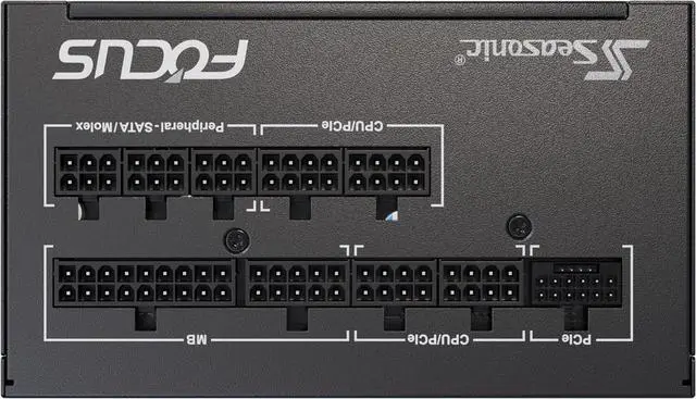 High Efficiency, 80 PLUS® Gold Certified ATX 3 and 16-Pin PCIe Gen 5 Cable (12V-2x6) OptiSink Design Fully Modular Cabling Design Compact Size (140 mm) 135mmFluid Dynamic Bearing(FDB) Fan Seasonic Hybrid Silent Fan Control Highly Reliable Japanese 105 °C Aluminum Electrolytic Capacitors Tight Voltage Regulation (12 V, 5 V and 3.3 V) [± 3 %] Ample +12 V Output DC to DC Converter Design Cable-free Connection Design Gold-Plated High Current Terminals (MB, CPU and PCIe) PVC Embossed Cable 10 Years Warranty