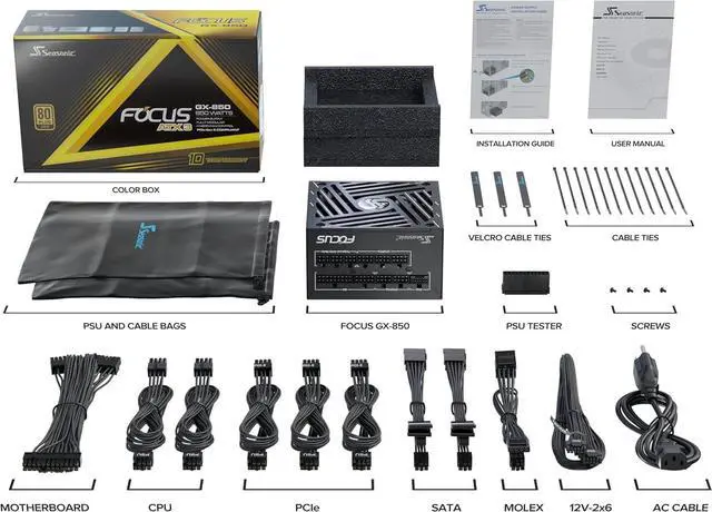 Fully Modular Cabling Design Compact Size (140 mm) 135 mm Fluid Dynamic Bearing (FDB) Fan Seasonic Hybrid Silent Fan Control Highly Reliable Japanese 105 °C Aluminum Electrolytic Capacitors