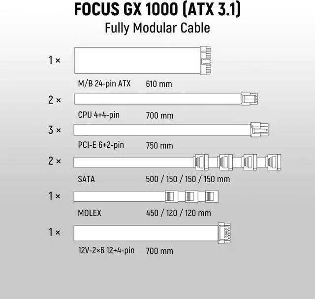 Modular & Durable Connectivity: Fully modular cabling, ATX 3 & PCIe Gen 5 (12V-2x6) support, gold-plated high-current terminals, and PVC embossed cables.