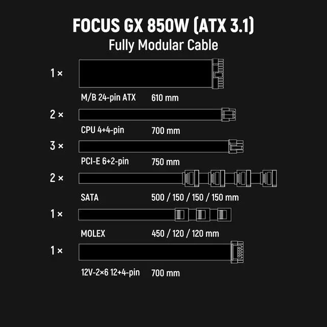 Seasonic Focus V4 GX-850 (ATX3) -850W -80+ Gold -Fully Modular -ATX Form Factor -Japanese Premium Capacitor -10 Year Warranty -Nvidia RTX 30/40 Super and AMD GPU Compatible -Focus V4