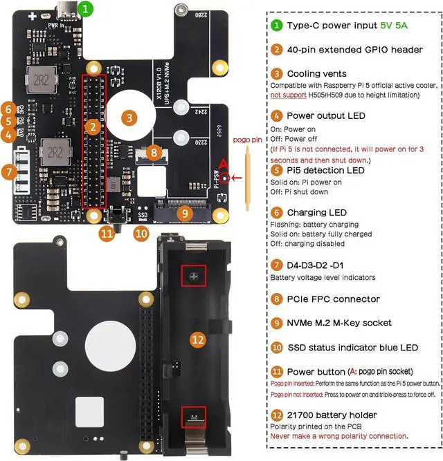 Compatibility: Pi 5 UPS compatible with Raspberry Pi 5 16GB/8GB/4GB/2GB; Model: X1208