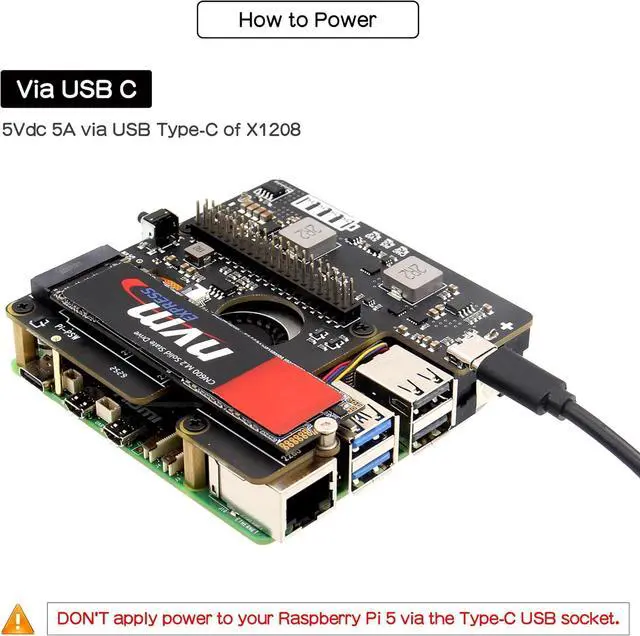 How to Power: Power via X1208 5Vdc 5A USB-C port