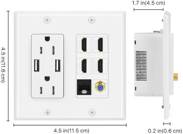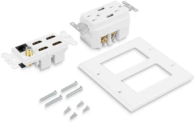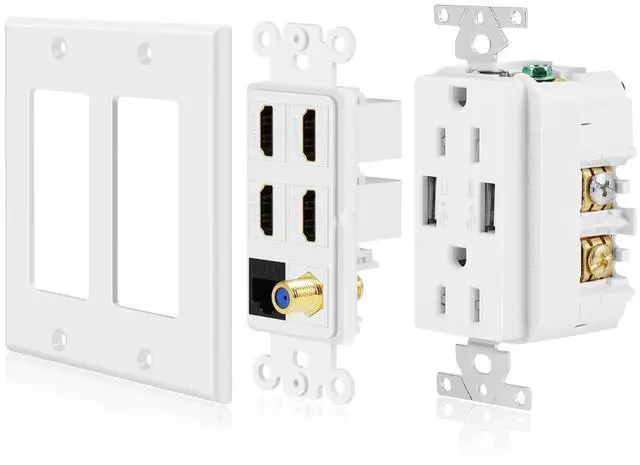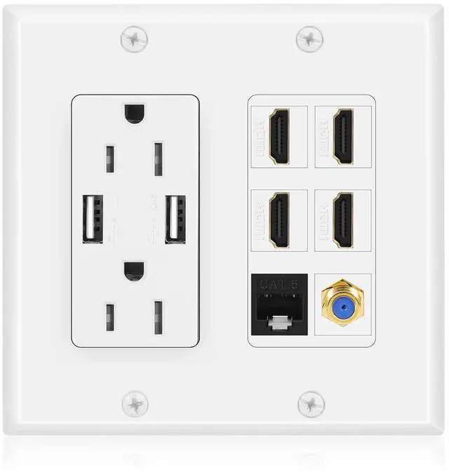 Superior Quality USB Receptacle Outlet - Crafted with heat and impact-resistant materials for longevity, this HDMI coax wall outlet plate is UL listed and provides reliable charging power