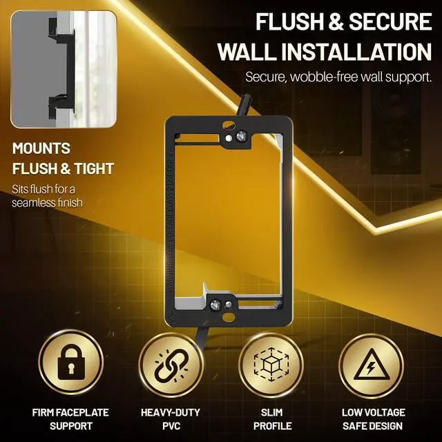 STRONG & STABLE HOLD: Thick PC plastic and reinforced locking wings keep this single gang low voltage mounting bracket from flexing or cracking, so faceplates sit tight to the wall and your low voltage box 1 gang install feels solid