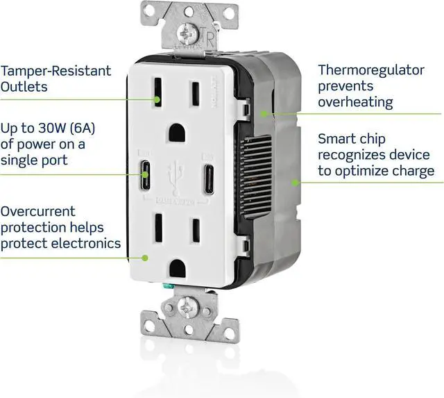 The most advanced USB in-wall charger on the market with up to 2X the charging power with PD enabled devices (No data transfer capability)