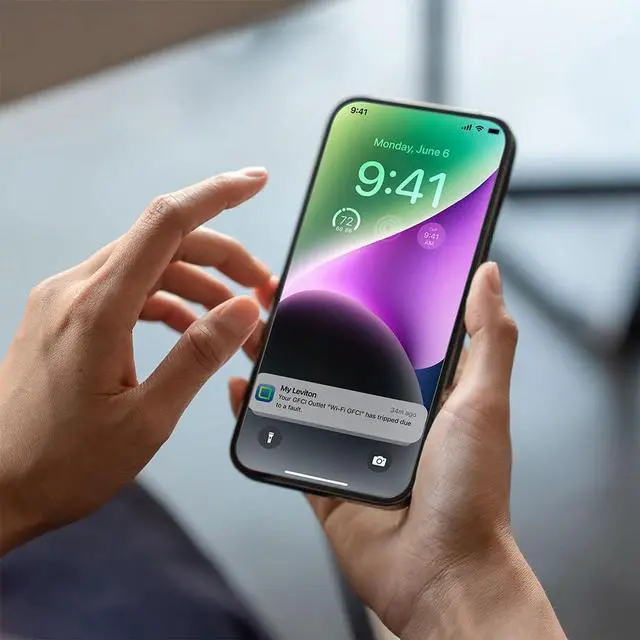 An upgrade to Levitons GFCI Outlet with Audible Trip Alert, allowing you to receive notifications and alerts wherever you are via the My Leviton app.
