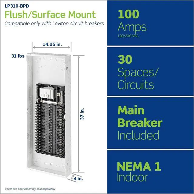 Leviton LP310-BPD 30 Space, 30 Circuit Indoor Load Center with 100 Amp Main Circuit Breaker
