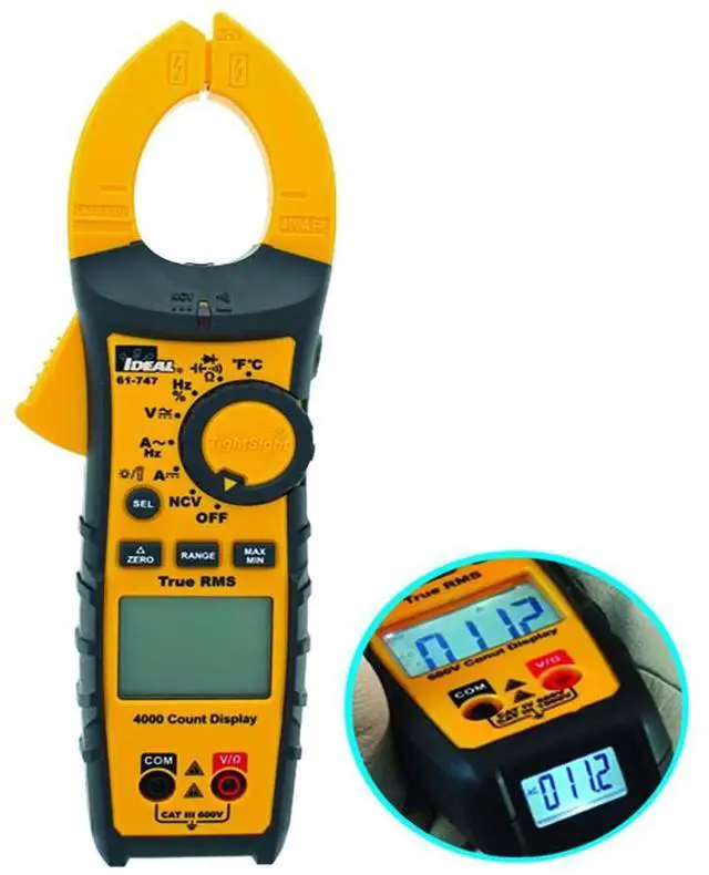 Ideal Electrical 61-747 TightSight 400 Amp 600-Volt Digital Truerms AC/DC Clamp Meter