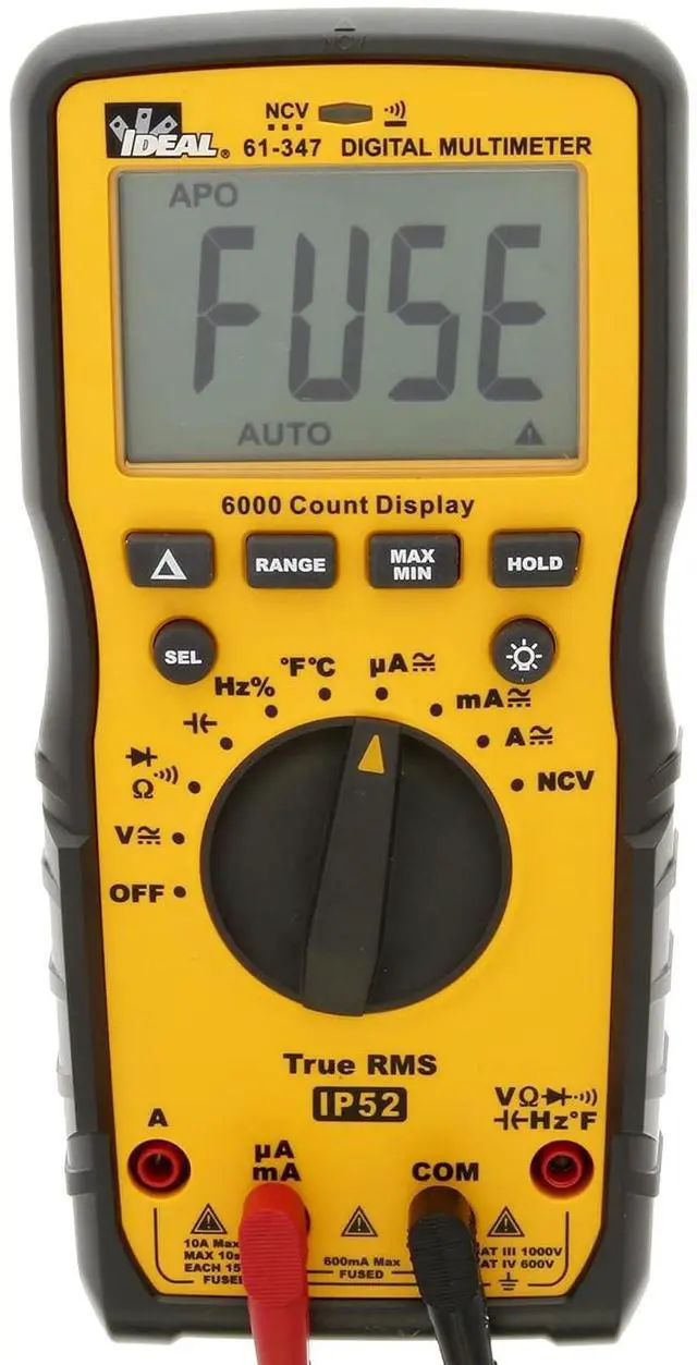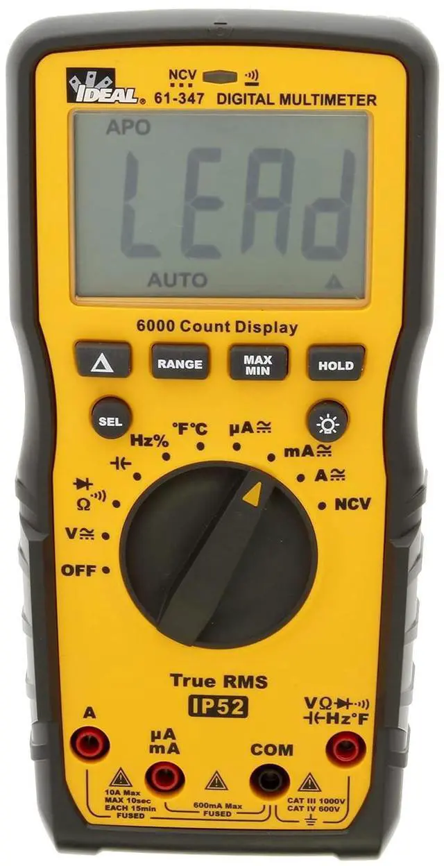 Measures AC/DC current, AC/DC voltage, frequency, resistance, continuity, capacitance, diodes, temperature and senses AC voltage