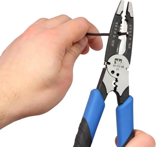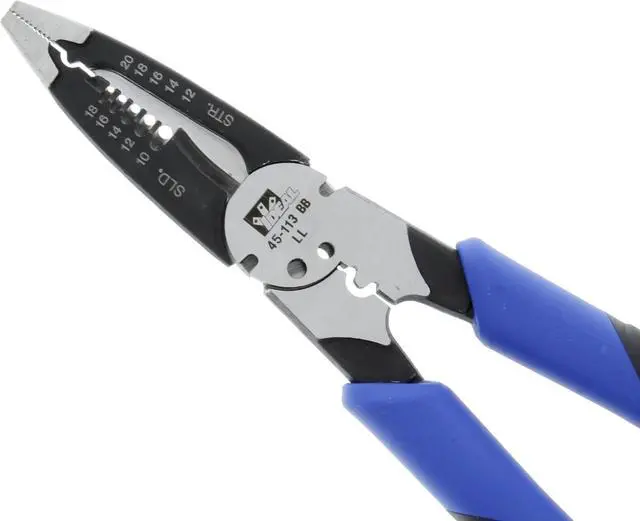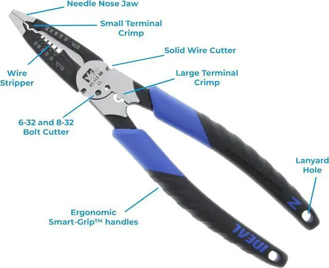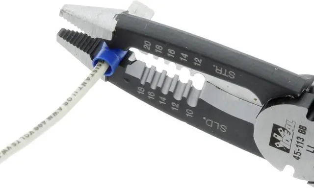 • Solid wire trimmer at tool pivot, Two crimp locations (one below pivot, one at the very tip)