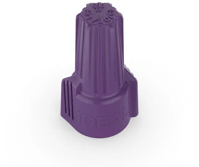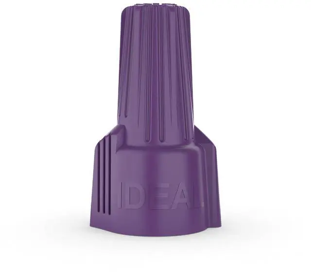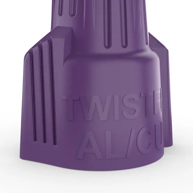 The IDEAL Twister Al/Cu is the only UL listed aluminum-to-copper twist-on connector that prevents aluminum oxidation while providing a secure connection. Specially formulated corrosion-resistant compound penetrates corrosion build-up on aluminum conductor Aluminum-to-copper and copper-to-copper twist-on connector For a complete list of approved aluminum to copper wiring combinations Compact, one-piece design features ribbed cap, swept wings and hexagonal head for easy installation by hand or with standard nut driver Live-action, square-wire spring expands and contracts with aluminum wiring Deep skirt provides maximum dielectric strength Tough UL 94 Volt-2 flame-retardant shell rated at 221°F Made in the U.S.A. of U.S. and global componentsDimensions Product Depth: 0.813" Product Width: 0.813" Product Height: 1.344"Details Color Family: Purple Minimum Wire Capacity: 1 #12 Al w/1 #18 Cu Electrical Product Type: Wire Connector Maximum Wire Capacity: 1 #10 Al solid w/2 #10 Cu solidWarranty / Certifications and Listings: UL listed to 486C and CSA certified to C22.2 #188 Compliant with federal specification w-s-610E.