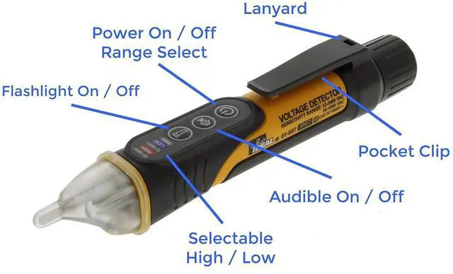 Senses 2 voltage ranges 12 to 1000V AC (Low ) or 50 to 1000V AC (High) allowing detection of low voltages (doorbells, thermostats, irrigation wiring, etc.) and standard voltage in tamper-resistant outlets when the tip is located near the Hot receptacle and/or Hot Connection point on the outlet