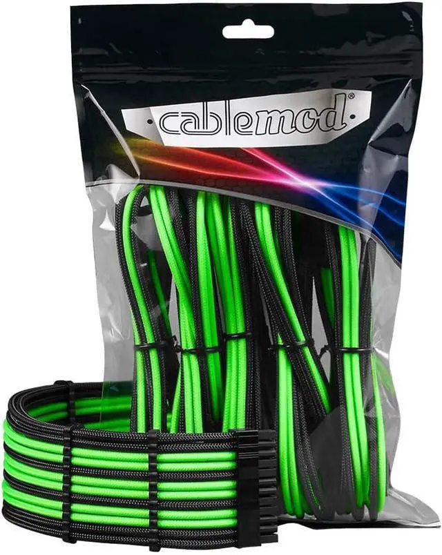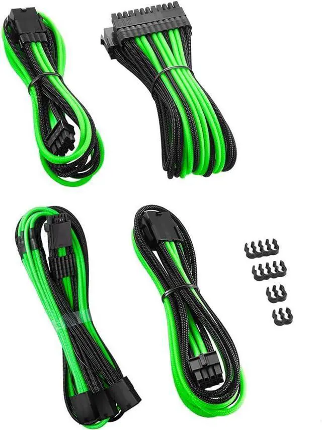 CableMod Pro ModMesh Sleeved 12VHPWR StealthSense Cable Extension Kit (Black + Light Green, 16-pin to Triple 8-pin)