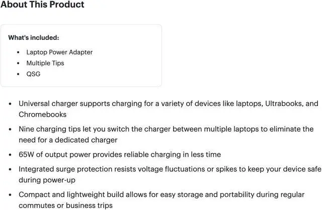 *Universal charger supports charging for a variety of devices like laptops, Ultrabooks, and Chromebooks