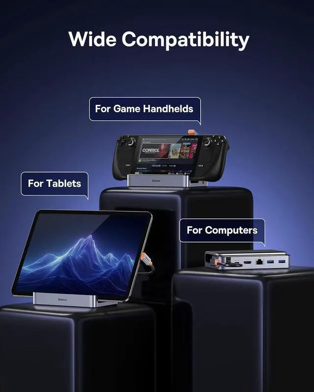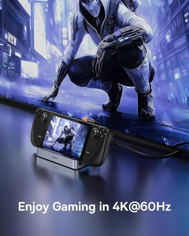 Baseus Docking Station for Steam Deck/ROG Ally/Legion Go, 6-in-1 Charging Dock, USB C Hub with HDMI 4K@60Hz, 1Gbps Ethernet, 3 USB A Ports, 100W Fast Charging