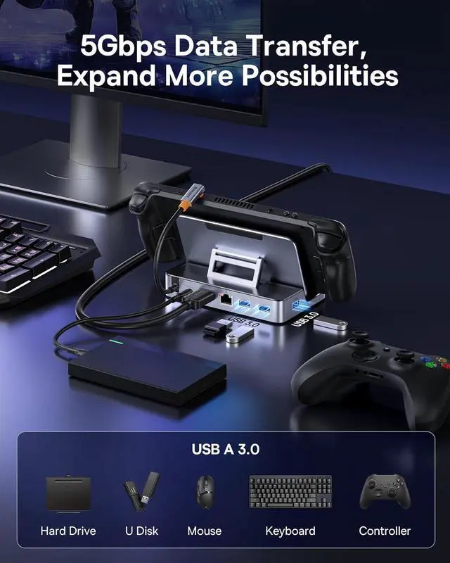 4K@60Hz Ultra Clarity: Enjoy stunning 4K@60Hz picture quality with our Steam Deck Docking Station, providing an immersive gaming experience like no other. Also Compatible backwards with 2K@60Hz, 1080P@120Hz.*NOTE: Power adapter and input cable are not included.