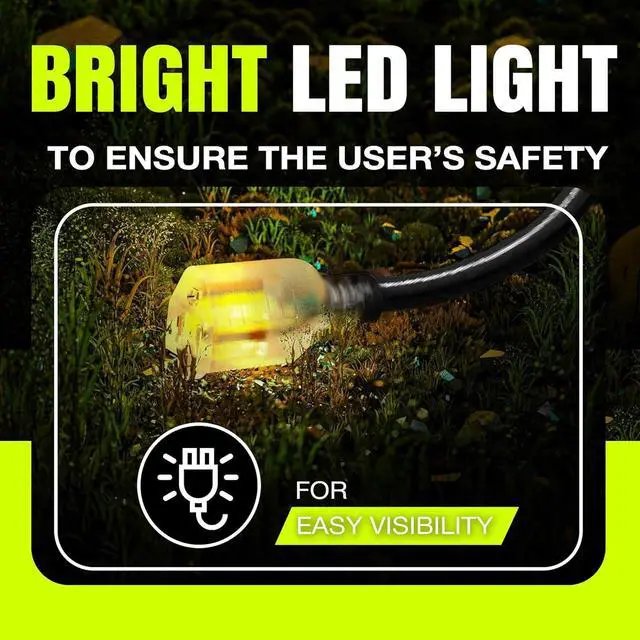Durable Performance Rely on the LifeSupplyUSA Heavy Duty Outdoor Extension Cord for unmatched durability and reliability, whether at home, work, or on a construction site. Engineered to perform in harsh conditions, this indoor & outdoor heavy duty extension cord 3 prong model withstands extreme temperatures and features a waterproof design, ensuring it lasts through any challenge. Built with a robust vinyl jacket, the three prong extension cord resists oil, grease, moisture, and abrasion, protecting against electrical hazards and wear. The durable construction of the power cord extension not only ensures safe operation across diverse environments but also contributes to the cord's longevity, making it a dependable choice for any task. Outdoor Electric Cord with Enhanced Visibility The lighted end of the indoor & outdoor electrical cord indicates power while the brightly colored PVC jacket improves visibility, minimizing tripping hazards in busy or dimly lit areas. This feature enhances safety and makes the electric cord extension easily identifiable among other tools, preventing accidental disconnections and ensuring smooth operation. Versatile and Powerful Electric Cords From powering heavy-duty equipment like drills and saws to lighting up your holiday decorations, LifeSupplyUSA Indoor & Outdoor Extension Cords are versatile enough to handle it all. Whether tackling major construction jobs, home renovations, or casual outdoor setups, this outdoor waterproof extension cord adapts seamlessly to your needs. Certified for Optimal Performance This 100 ft,16 Gauge, 3 Prong SJTW waterproof outdoor extension cord supports 10 AMPs, 125 Volts, and up to 1250 Watts, the heavy duty drop cord extension power cord is designed for extra safety and robust performance, capable of powering high-demand equipment with ease and reliability.