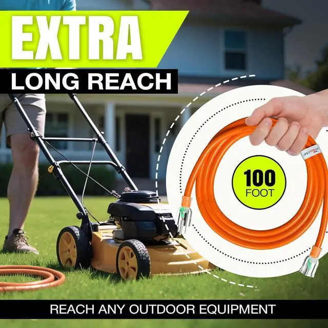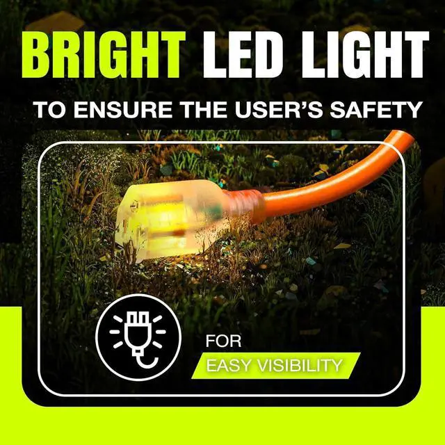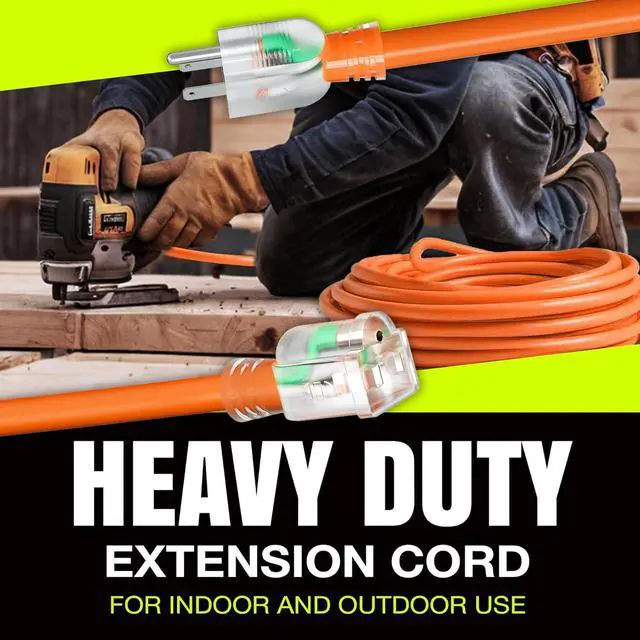 Durable Performance Rely on the LifeSupplyUSA Heavy Duty Outdoor Extension Cord for unmatched durability and reliability, whether at home, work, or on a construction site. Engineered to perform in harsh conditions, this indoor & outdoor heavy duty extension cord 3 prong model withstands extreme temperatures and features a waterproof design, ensuring it lasts through any challenge. Built with a robust vinyl jacket, the three prong extension cord resists oil, grease, moisture, and abrasion, protecting against electrical hazards and wear. The durable construction of the power cord extension not only ensures safe operation across diverse environments but also contributes to the cord's longevity, making it a dependable choice for any task. Outdoor Electric Cord with Enhanced Visibility The lighted end of the indoor & outdoor electrical cord indicates power while the brightly colored PVC jacket improves visibility, minimizing tripping hazards in busy or dimly lit areas. This feature enhances safety and makes the electric cord extension easily identifiable among other tools, preventing accidental disconnections and ensuring smooth operation. Versatile and Powerful Electric Cords From powering heavy-duty equipment like drills and saws to lighting up your holiday decorations, LifeSupplyUSA Indoor & Outdoor Extension Cords are versatile enough to handle it all. Whether tackling major construction jobs, home renovations, or casual outdoor setups, this outdoor waterproof extension cord adapts seamlessly to your needs. Certified for Optimal Performance This 100 ft,10 Gauge, 3 Prong SJTW waterproof outdoor extension cord supports 15 AMPs, 125 Volts, and up to 1875 Watts, the heavy duty drop cord extension power cord is designed for extra safety and robust performance, capable of powering high-demand equipment with ease and reliability.