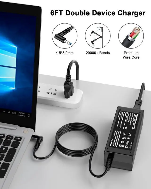 Input: 100-240V, 50-60Hz Output: 19.5V-2.31A 45W