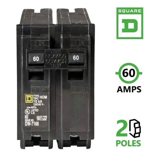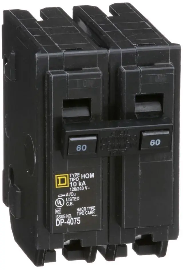 Plug In Circuit Breaker, HOM, Number of Poles 2, 60 Amps, 120/240VAC, Standard