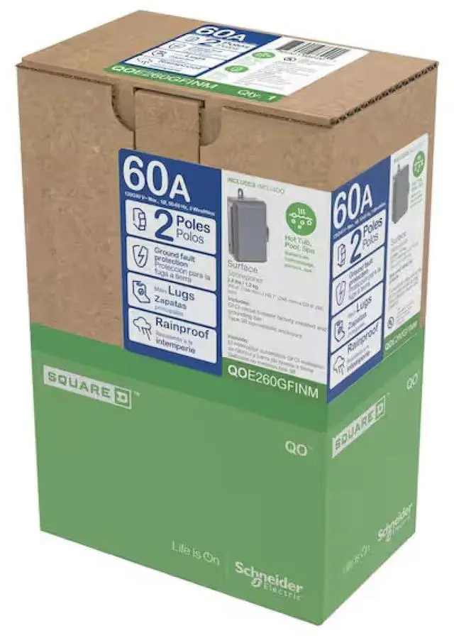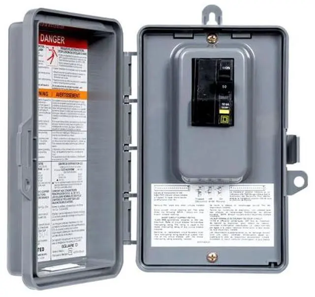 2-poles and 60A enclosed circuit breaker It is rated at NEMA 3R and has ground fault protection The enclosure provided is nonmetallic, it is used in 120/240 V spa systems