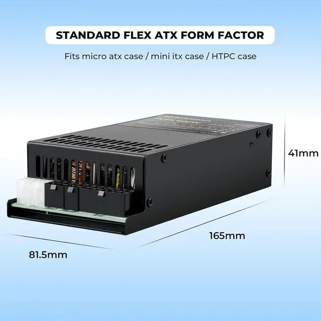 Compact ITX Builds: 165*82*40mm, standard flex atx form factor, used for micro atx or mini itx case or HTPC cases.Ideal for ultra-small ITX cases or micro atx cases requiring high power density.