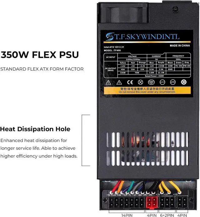 Flex Power Supply 350W Fully Modular Small-1U PSU 110-220V AC with 1x20/24Pin Motherboard Power,2xSATA Interfaces, 2xIDE Fan Power for Rack Mount Case Desktop Server POS AIO System