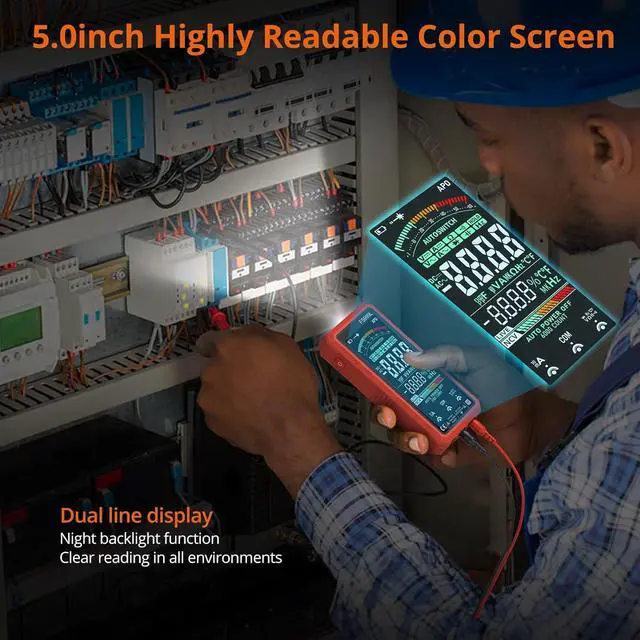 5.0 Inch Color Screen--- Featuring a 5.0-Inch Backlit Display, Our Multimeter Provides Clear Visibility Of Test Data, Even In Dim Conditions, And With a Flashlight For Nighttime Use, Improving Readability And Usability, Making It An Ideal Tool For Any Environment