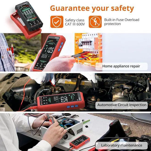 Cat III 600V Safety Rating--- Complies With Cat III 600 V Standard, Built-in Fuse Overload Protection and Made Of Sturdy ABS Material, Offering Dual Insulation Protection, Which Is Crucial For Electrical Work In Various Settings. Compact And Lightweight, Easy To Carry Around