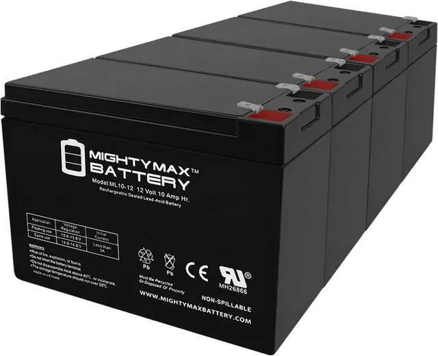 ML10-12 SLA is a 12V 10AH Sealed Lead Acid (SLA) rechargeable maintenance free battery, Pack of 4 - UL Certified
