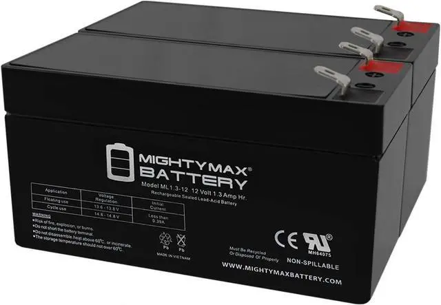 ML1.3-12 SLA is a 12V 1.3AH Sealed Lead Acid (SLA) rechargeable maintenance free battery, Pack of 2 - UL Certified