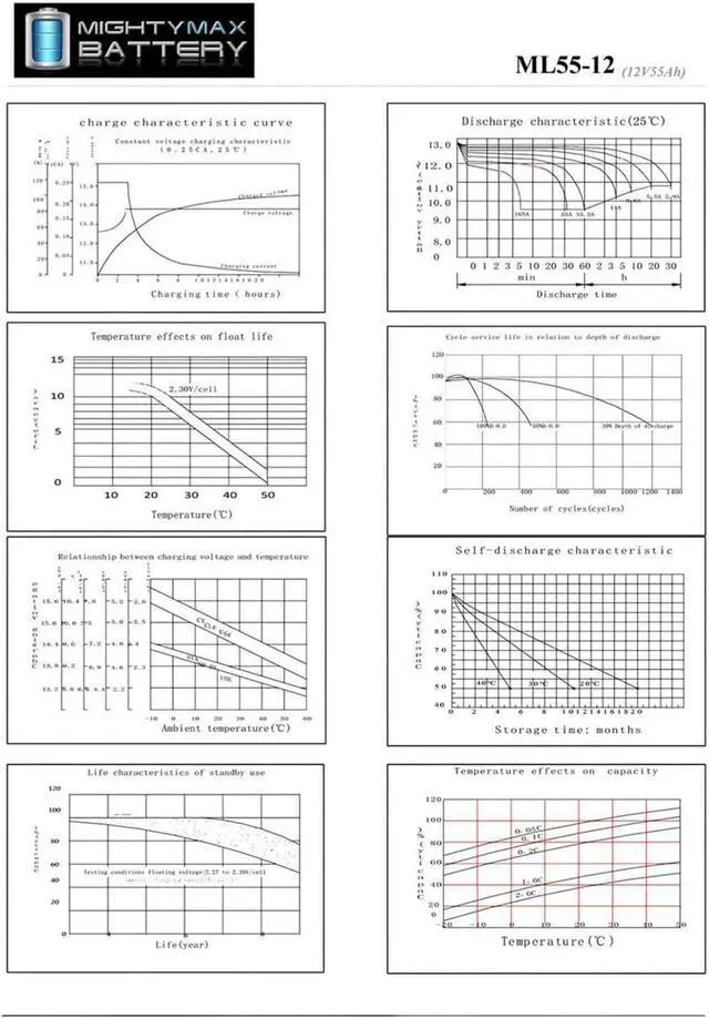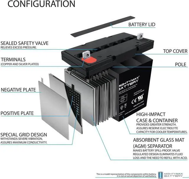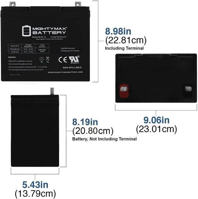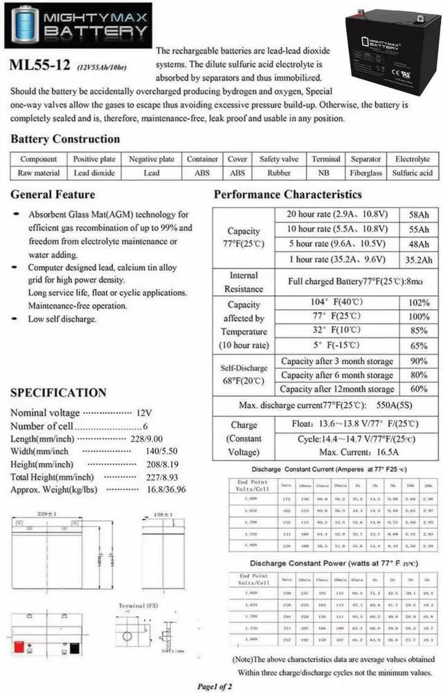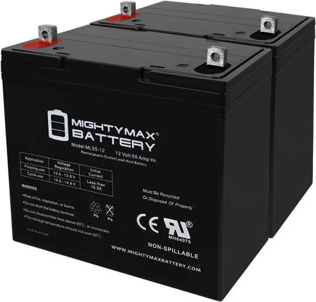ML55-12 SLA is a 12V 55AH Sealed Lead Acid (SLA) rechargeable maintenance free battery, Pack of 2 - UL Certified
