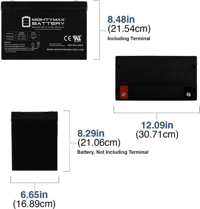 Dimensions: 12.09 inches x 6.65 inches x 8.48 inches. Listing is for the Battery and Screws only. No wire harness or mounting accessories included.