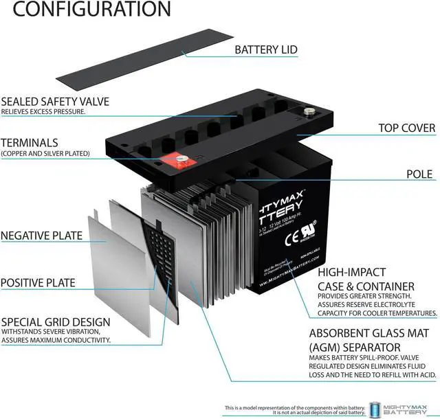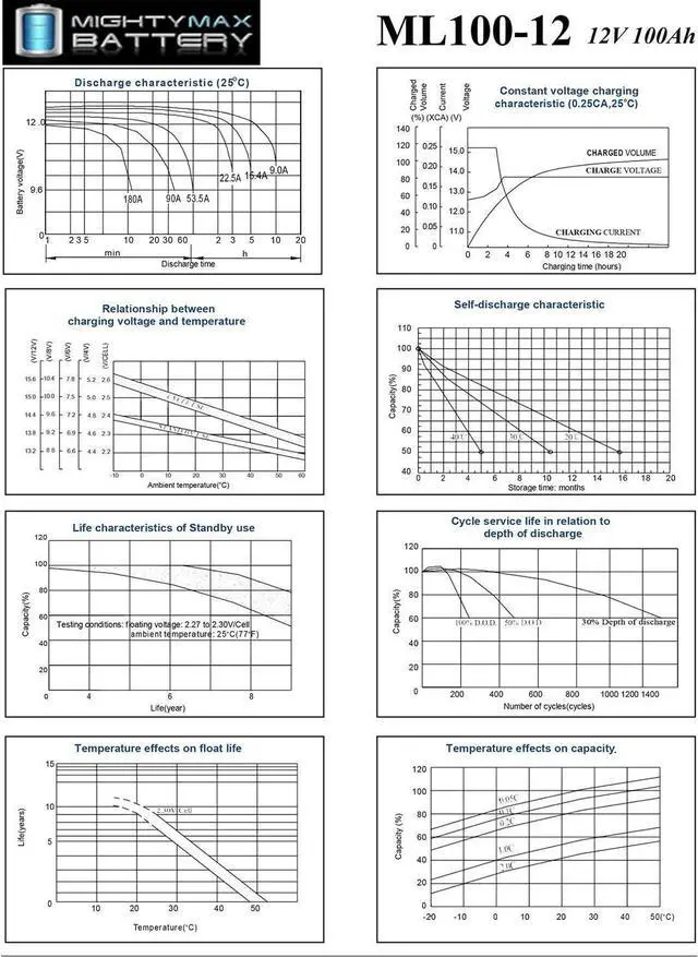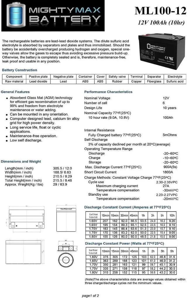 ML100-12 SLA is a 12V 100AH Group 27 Sealed Lead Acid (SLA) rechargeable maintenance free battery - UL Certified