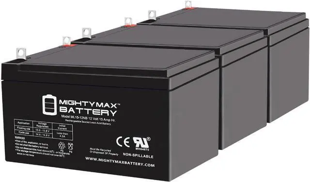 Mighty Max Battery ML15-12NB 12V 15Ah Replacement Battery Compatible with APC Back-UPS ES 750VA Broadband BE750BB - 3 Pack